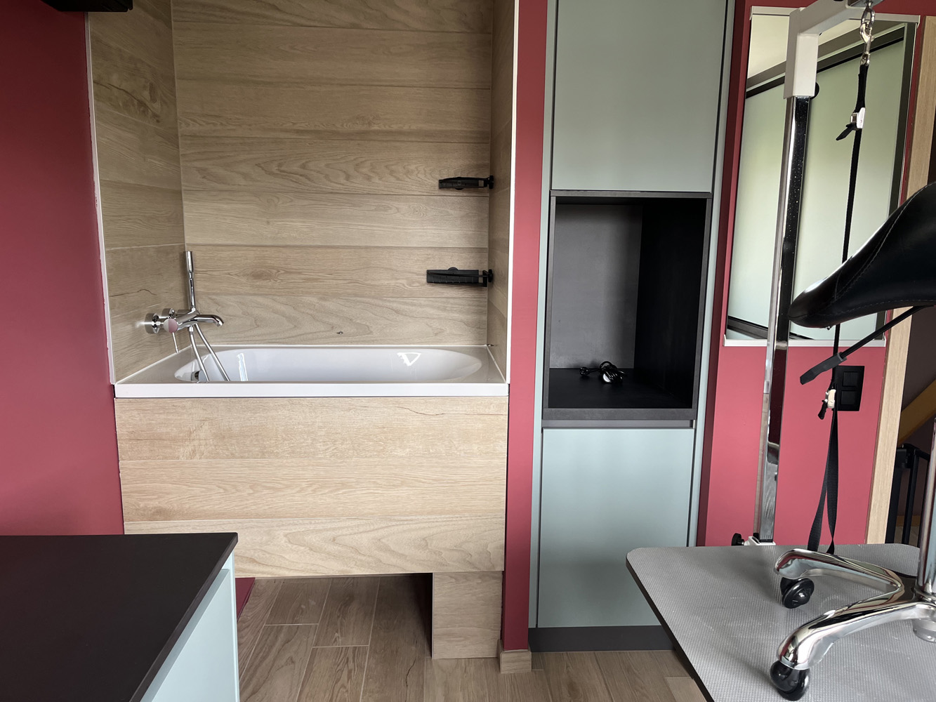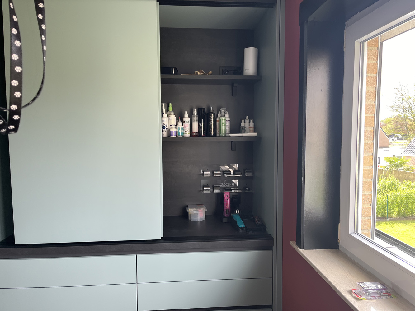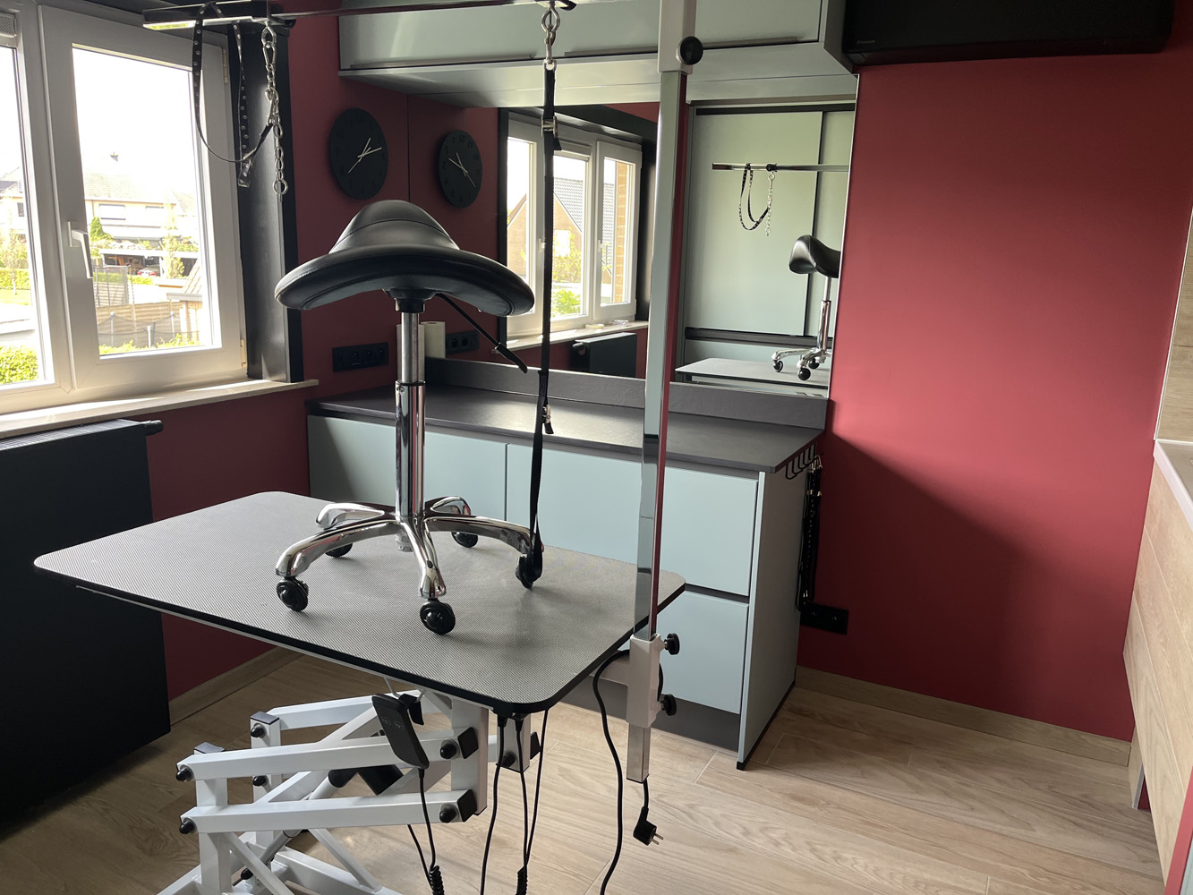 Het trimsalon is perfect uitgerust om kleine tot middelgrote honden een goede vachtverzorging te geven. Het trimsalon bevindt zich in een aparte ruimte van het onthaal op deze manier kan ik garanderen dat de hond in alle rust behandeld kan worden wat resulteert in een goed resultaat, om die redenen is het ook niet mogelijk om bij u hond te blijven tijdens de trimbeurt. Ik werk steeds 1 op 1 aan een hond.
